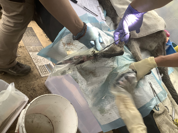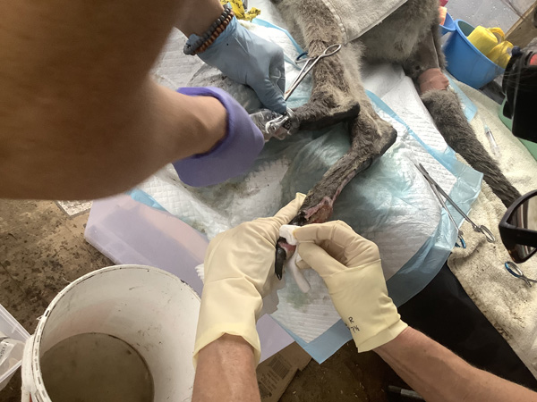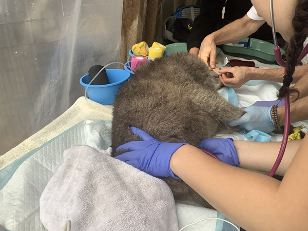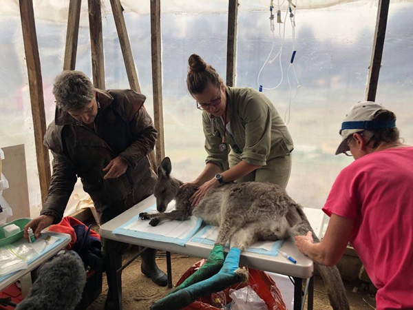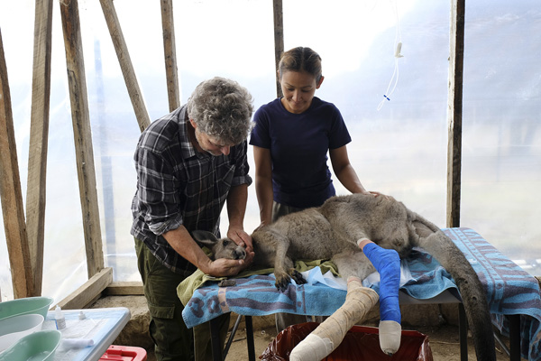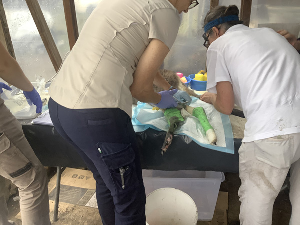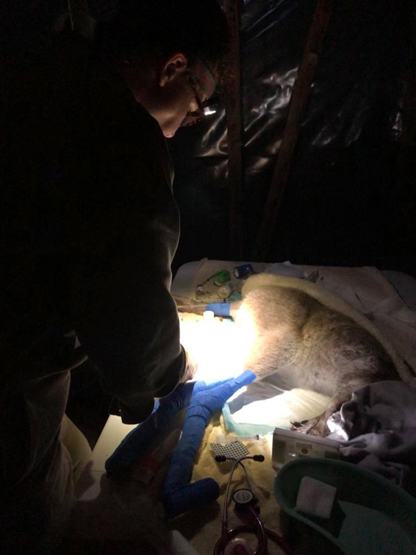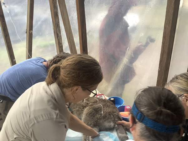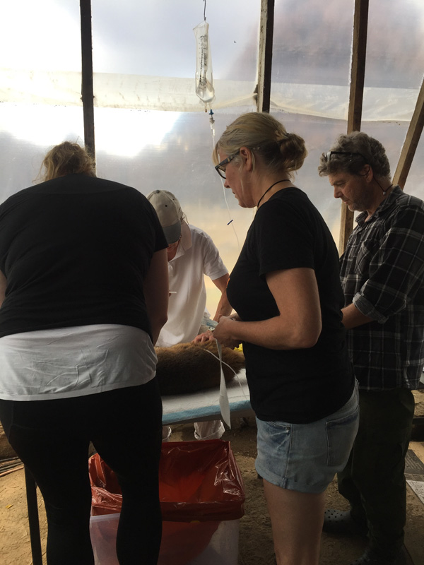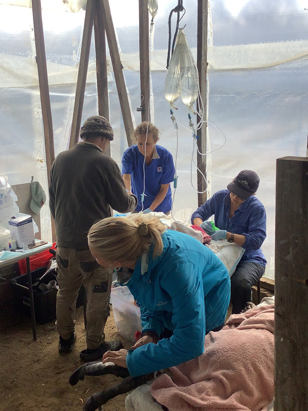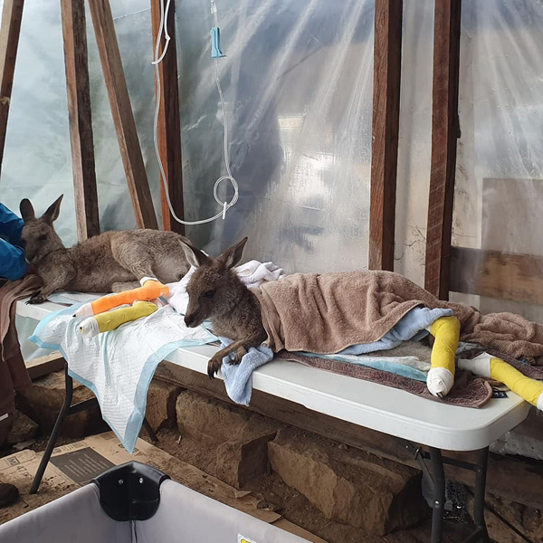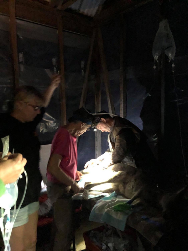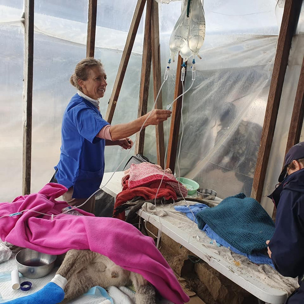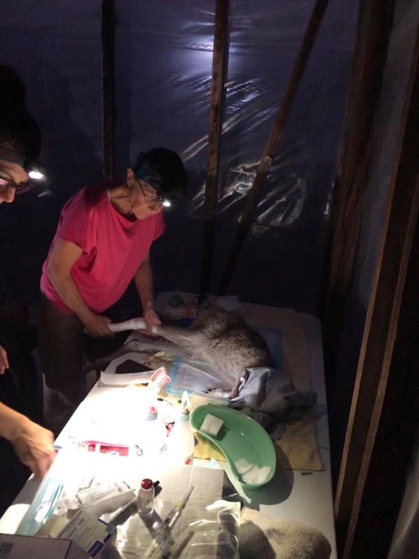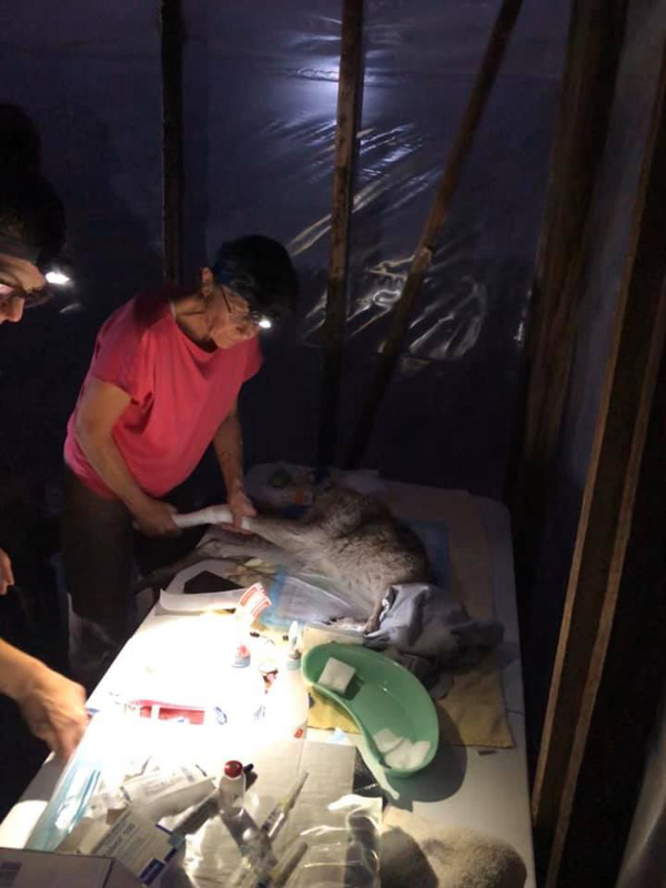 It turns out there was. HUHA, a not for profit animal rescue organisation from New Zealand, heard about our plight from a very kind wildlife carer, and quickly flew to Australia. HUHA arrived at the sanctuary exactly 1 week after the fires. They brought vets, nurses, darters and builders and setup an emergency triage clinic in an unused room attached to our house, which had only been damaged, not destroyed during the fires. Within hours of arriving, they began treating the survivors, as well as repairing and constructing new enclosures. They were organised and caring towards our wildlife. For the next 2 weeks, they treated the survivors and helped search for more. During their time here, so many were saved.