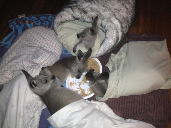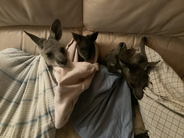 There has never been a time when don't have joeys in care - usually quite a few at the one time. We have never said no to taking orphaned or injured joeys, and never will.